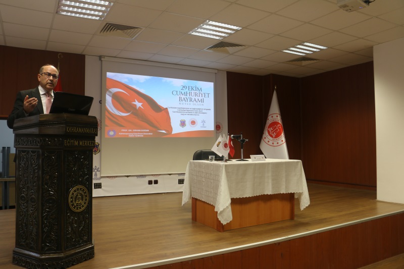 Kahramanmaraş Personel Eğitim Merkezimizde Çeşitli branşlarda eğitim gören kursiyerlere yönelik, Kahramanmaraş Sütçü İmam Üniversitesi Rektör Yardımcısı Prof. Dr. Orhan DOĞAN tarafından ‘’29 Ekim Cumhuriyet Bayramı’’ konulu konferans düzenlenmiştir. Program Eğitim Merkezi Başkanı İlknur GÖRGEL’in plaket takdimiyle sona ermiştir. Konferansa teşrilerinden ötürü hocamıza teşekkür ederiz.