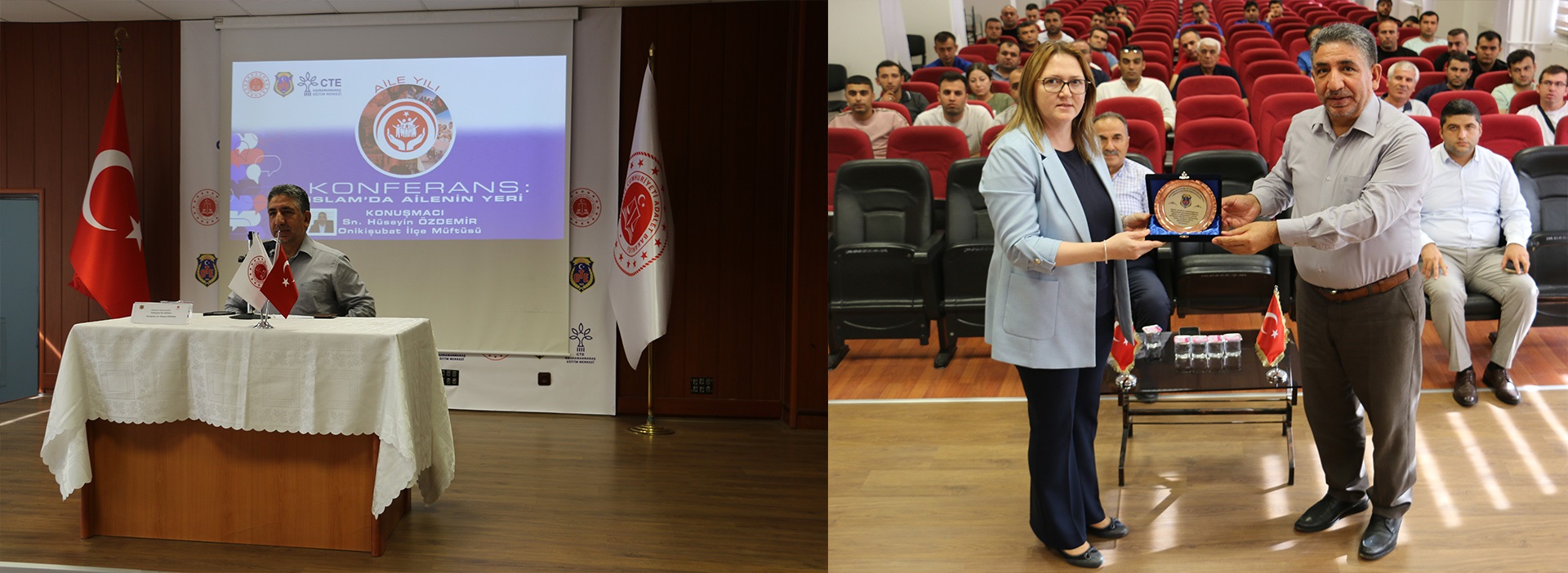 Kahramanmaraş Personel Eğitim Merkezimizde, 2025 yılının Sayın Cumhurbaşkanımız Recep Tayyip ERDOĞAN tarafından “Aile Yılı” ilan edilmesi dolayısıyla, çeşitli branşlarda eğitime katılan kursiyerlere yönelik konferans düzenlenmiştir. Konferans Kahramanmaraş Onikişubat İlçe Müftüsü Sayın Hüseyin ÖZDEMİR tarafından “İslamda Ailenin Yeri” temasıyla gerçekleştirilmiştir.Hocamıza teşriflerinden dolayı teşekkür ederiz.